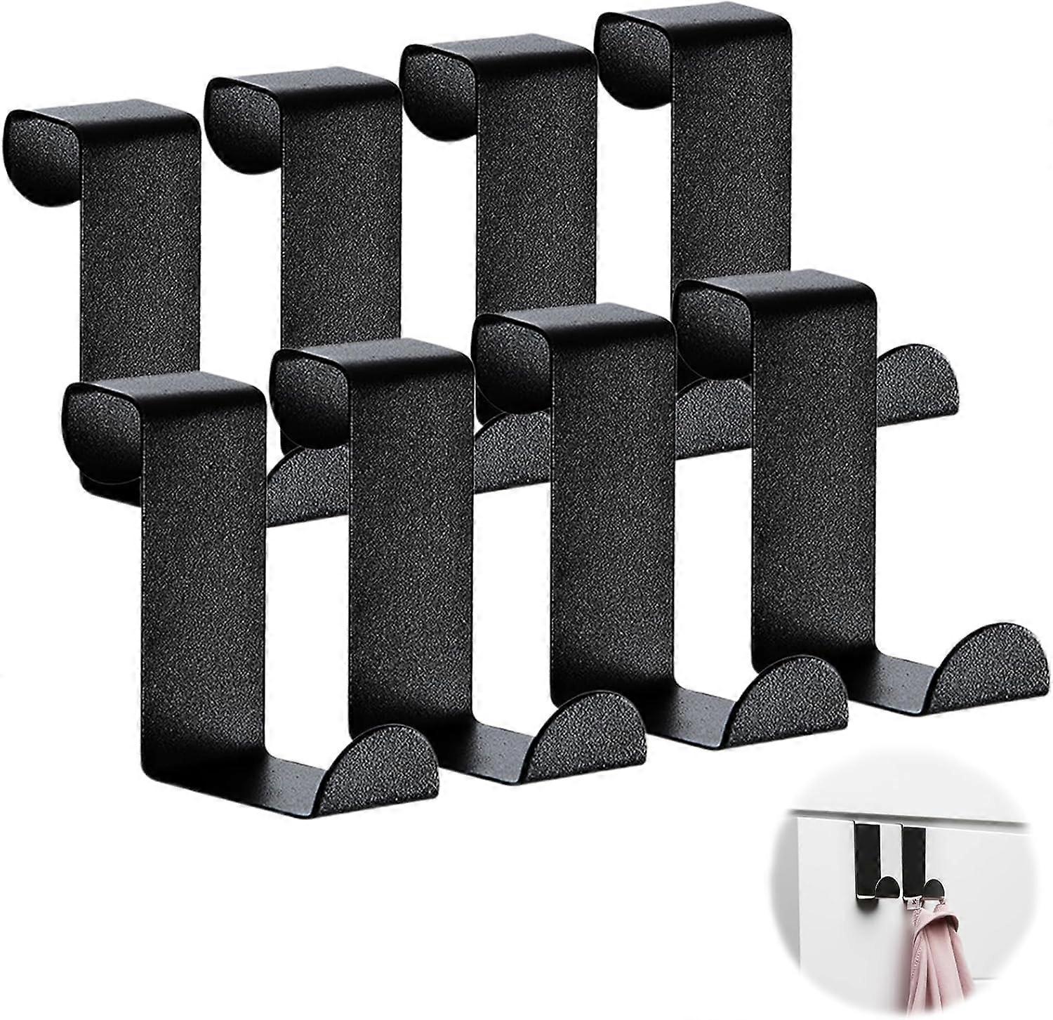 8PCS Black Stainless Steel Over The Door Hooks - Heavy Duty Load Capac