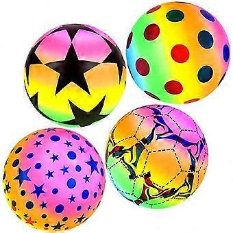 9" Rainbow Neon Colorful Design Inflatable Beach Balls - Playground Super Bouncy Fun Pool Inflate Toy