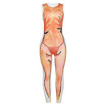 Buksedragter med digitalt tryk Kvinder Y2K Lynlås O-hals Uden ærmer SkinnyOne stykker Kvinde Sommer Trend Fest Gade Outfit