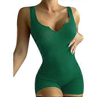 Dame Bodycon Shorts Buksedragter V-hals Uden ærmer Afslappet Ét stykke Tank Buksedragter til Sommer og Forår XL Grøn