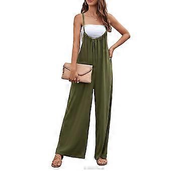 Buksedragt med brede ben Høj talje Rygløs rem Afslappet løs polyester Dametøj OD Grøn L