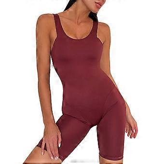 Kvinder Sport Bodysuit Ren farve Slank Tynd Dyb U Skønhed Tilbage Yoga Buksedragter til Kvinde Vinrød L