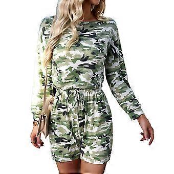 Kvinder Trykt Buksedragt Langærmet Rund hals Afslappet Monteret Snøre Elastisk talje Trykt Flysedragt til Dagligdagen M Lysegrøn