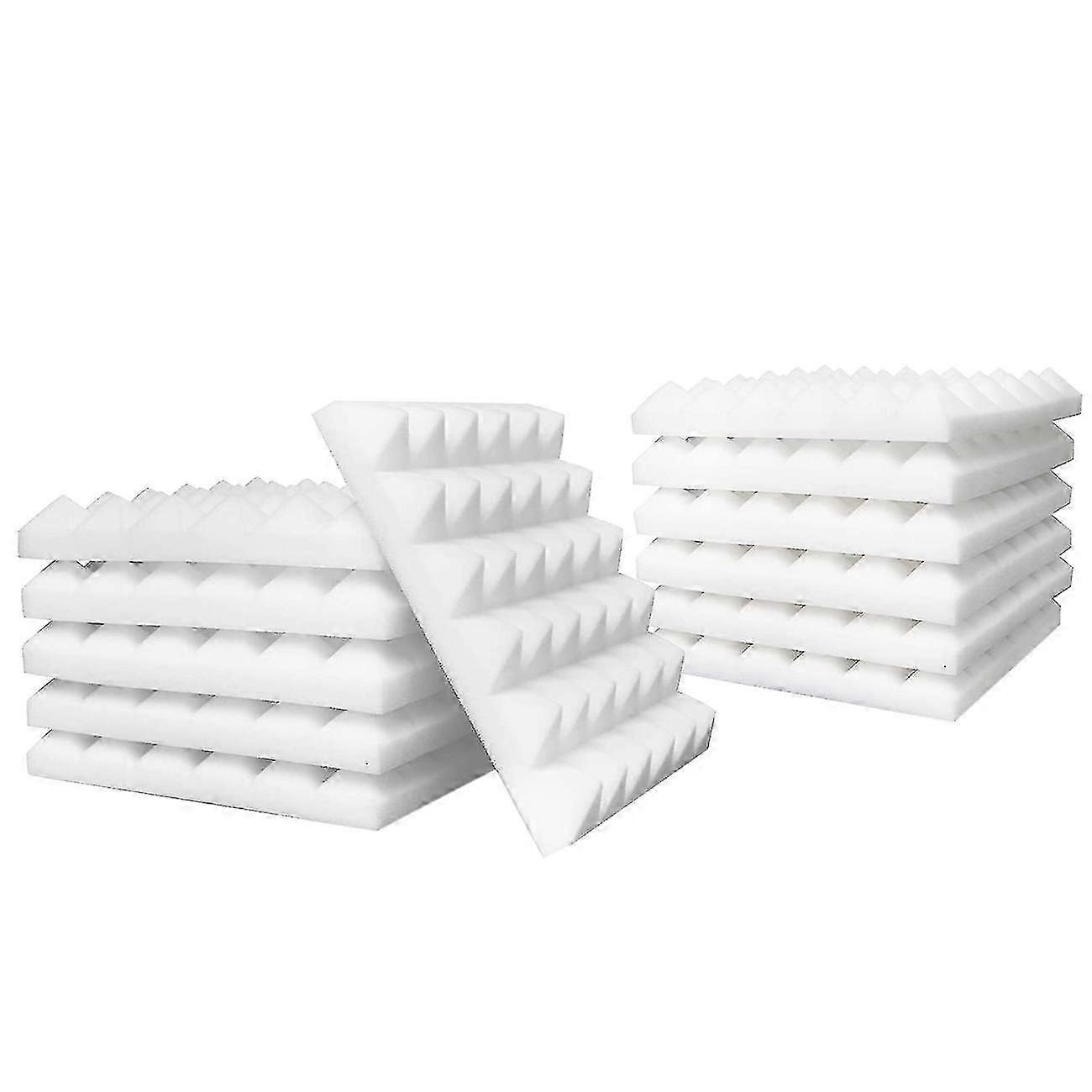 Acoustic Panels, Acoustic Foam For Recording Studio/live Room Soundproof Wall Panels, Sound Proof F FG05 [Better Sound Absorption] The acoustic panels adopt the pyramid structure shape, forming more rebound grooves, while the thickness of the acoustic foam is 2 inches, which can absorb and consume sound energy to the maximum extent, helps reduce reverb, flutter echoes, undesirable acoustic reflections, unwanted noises.[100% Polyurethane, SGS Safety Certification] To ensure the acoustic foam panels quality, The sound panels are made of 100% Polyurethane, without adding any other filler materials, our sound foam have passed the SGS safety certification, non-toxic and harmless, to ensure the safety of you and your family use.[Available for Use in Multiple Scenes]The sound foam can be used in small to medium size rooms, theater rooms, recording studios, churches, or offices, etc., reduce unwanted noise and echo.[Meets U.S. Material Fire Standards]The acoustic foam panels have passed the fire test, open flame contact will automatically extinguish and form a flame retardant layer to prevent further then, minimizing the risk of fire.Colour:WhiteMaterial:PolyurethaneSize:30 x 30 x 5cmPackage Contents:12 x soundproofing foamsOnly the above package content, other products are not included.Note: Light shooting and different displays may cause the color of the item in the picture a little different from the real thing. The measurement allowed error is +/- 1-3cm.