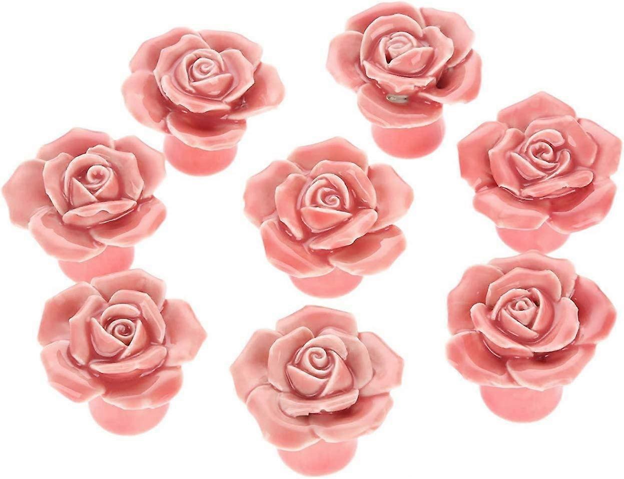 AOOPOO 8PCS Modern Ceramic Rose Flower Drawer Closet Cabinet Cupboard Pull Handle Door Knobs (Purple)