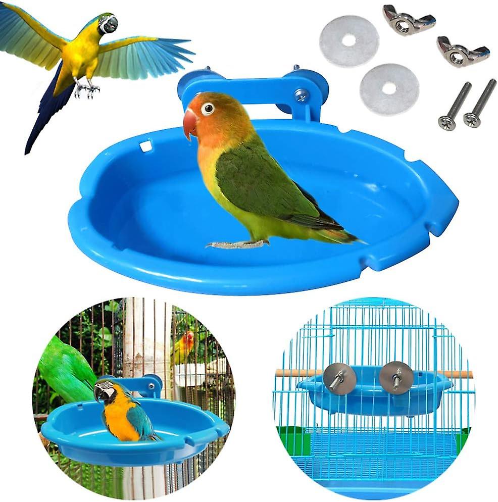 AURA 2PCS Bird Bath Hanging Bird Water Bowl Tub Bird Food Feeder Shower Box Holder Tray Parrots Bathing Tubs Toys Accessories