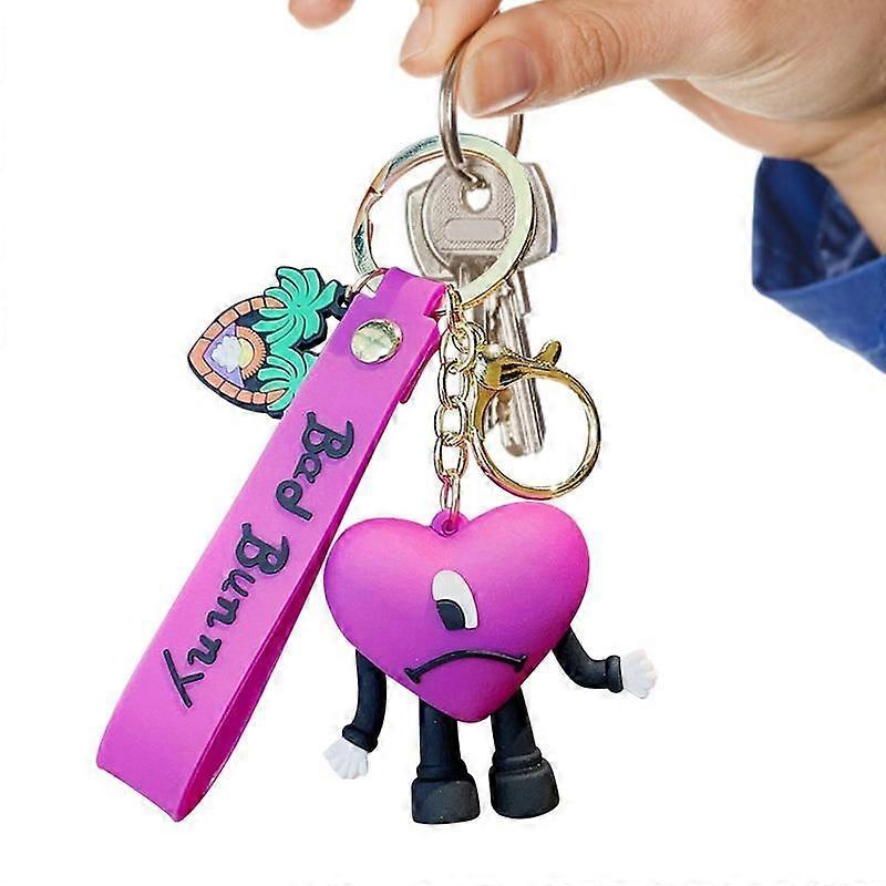 Bad Bunny Keychain Fashion Jewelry Charm Pendant 3D Heart Shape Keyrings Car Pendant Women Bag Pendant Girls Birthdays Gifts
