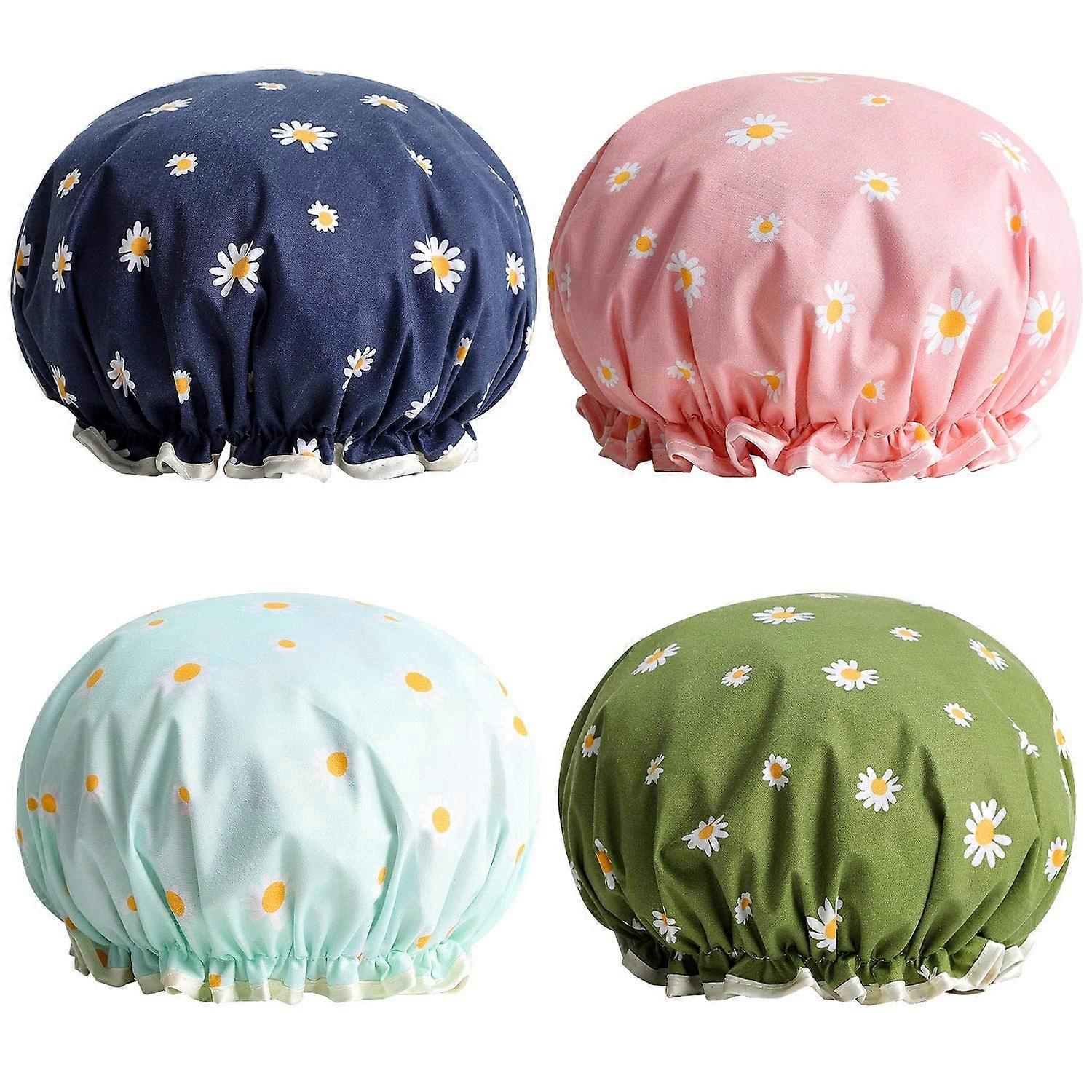 Bathroom hats, 4 Pack Bath Cap for Women Waterproof Double Layered Elastic Bathroom hat