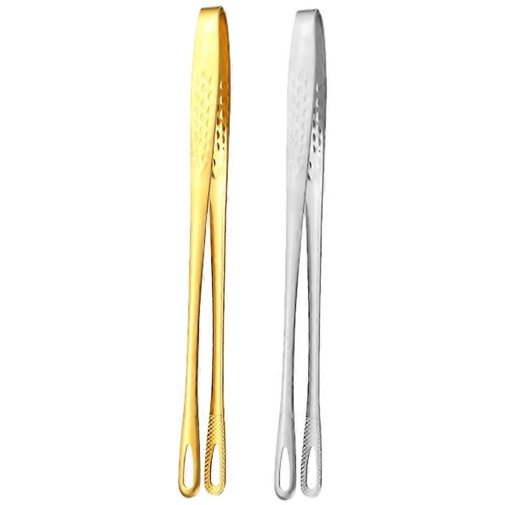 Portable Barbecue Tongs Stainless Steel Food Serving Anti Slip Gripping 24X1.5CM Long Handle Design 2Pcs