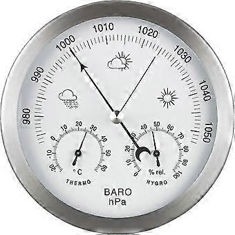 Barometer Vejrstation 3-i-1 rustfrit stål Ramme 14 cm termometer