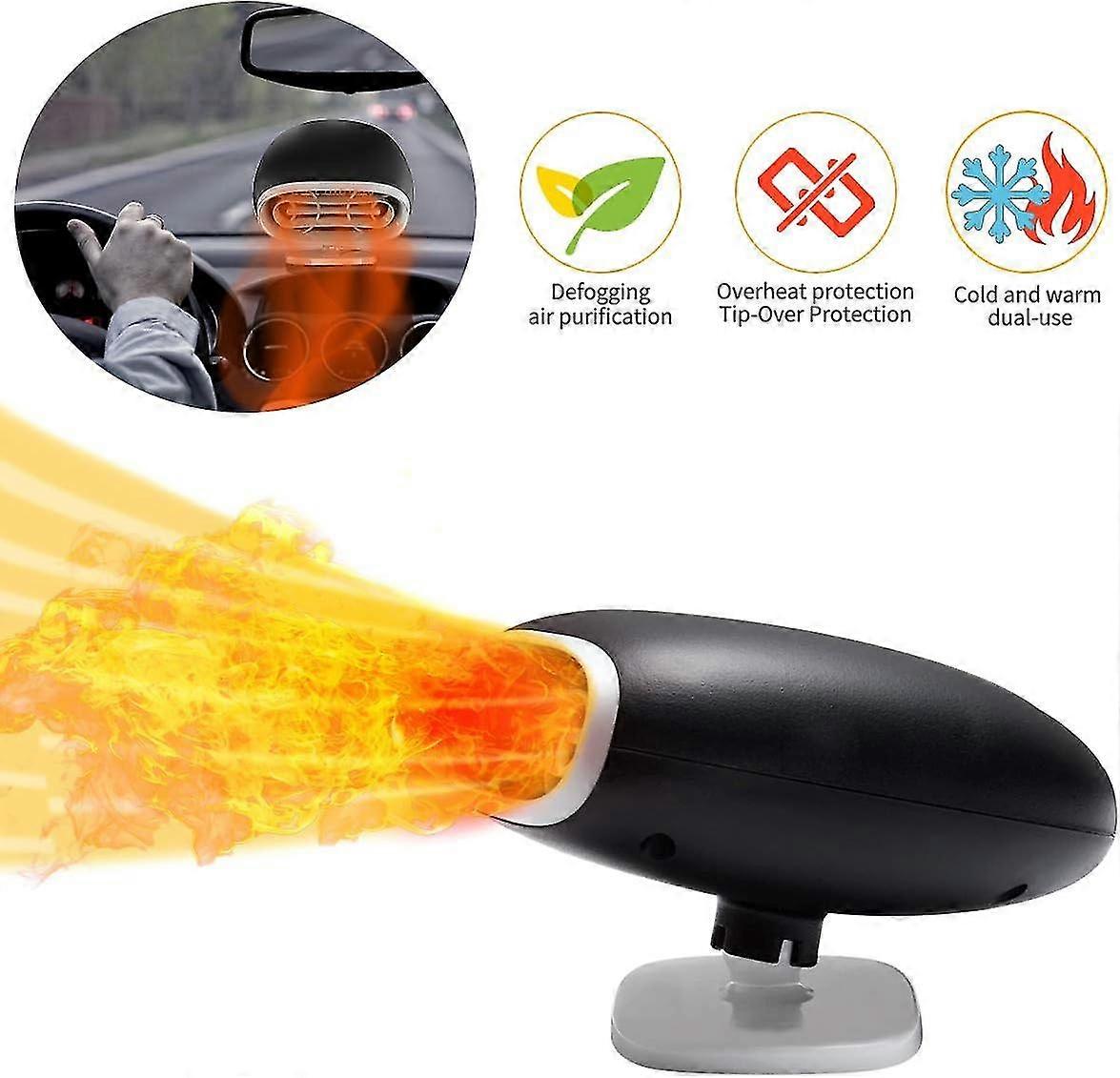 Car Fan Heater 12v, Winter Car Heater With Cleaning Portable Windshield Defogger Defroster Fast Heating Fan, Low Noise, 360 Rotation