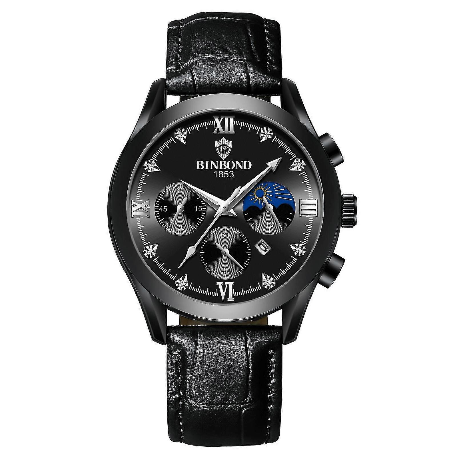 Binbond B3591 Quartz Watch, Color: Black Leather-black-black Black Leather-black-black