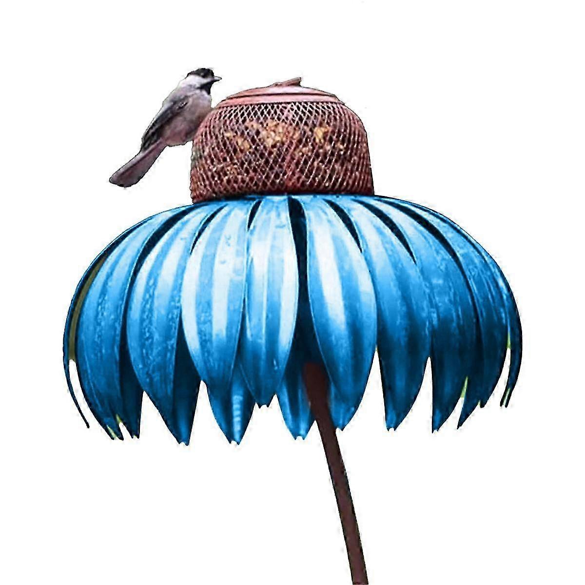 Blue Feeder Bottle with Stand Outdoor Garden Flower Shaped Bird Feeder