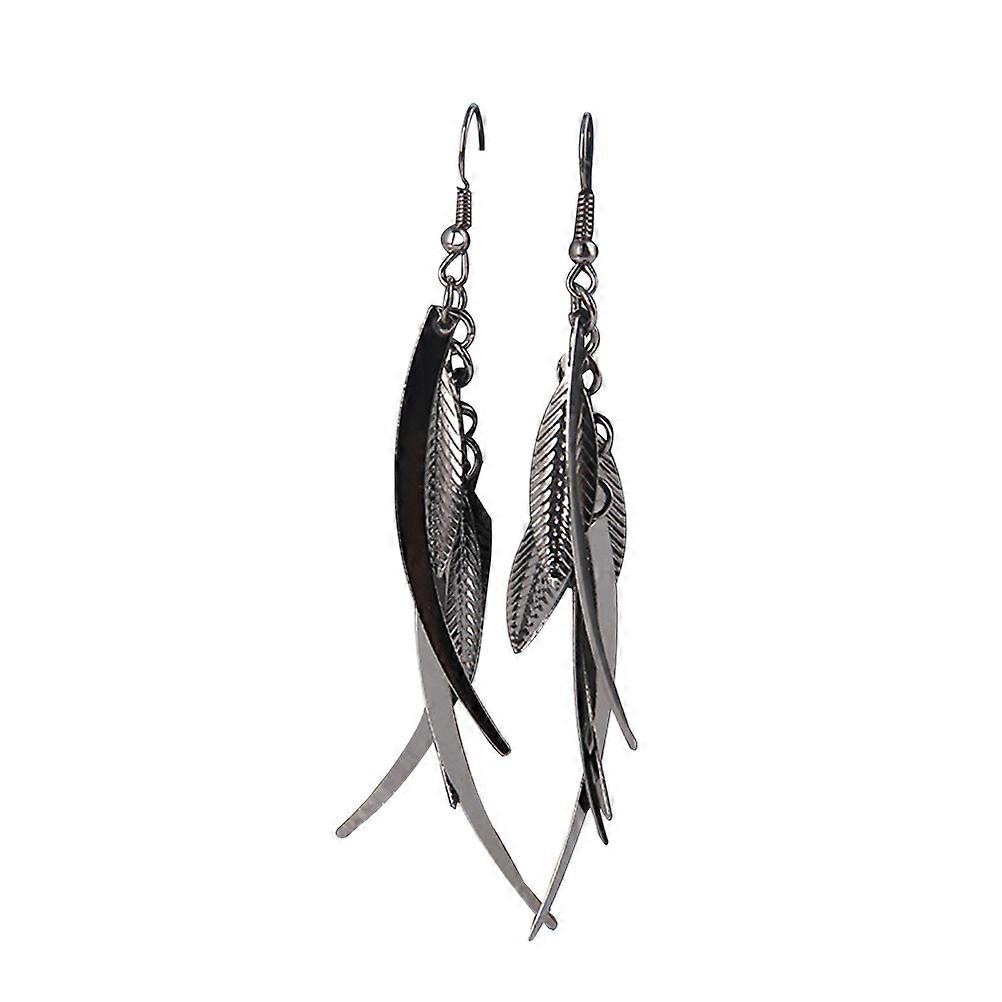 Leaf Shape Earrings Creative Alloy Jewelry for Women Black Dangle Drop Fashion Earrings 1Pair