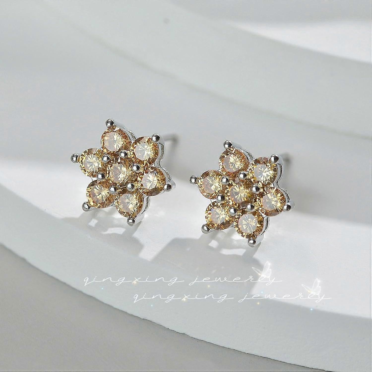 Flower Color Zircon Stud Earrings Floral Ears Christmas Snowflakes Fashion Earrings