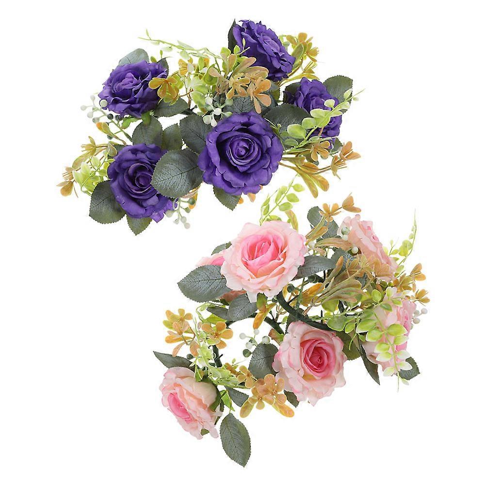 Floral Candler Rings Romantic Rose Candle Ring Pillar Candles Wreath Pink Table Decoration Wedding Decor 2Pcs