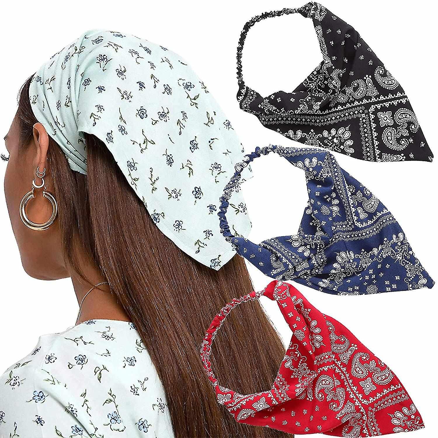 Floral Elastic Hair Scarf Headband - 3 Pcs Head Kerchief Headband