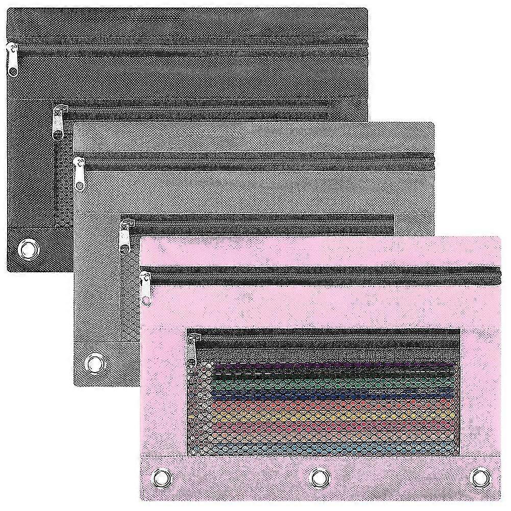 Pencil Pouch 3 Ring Binder, 3 Pack 3 Color Zipper Pencil Pouch Pencil Case Bag With Double Pocket