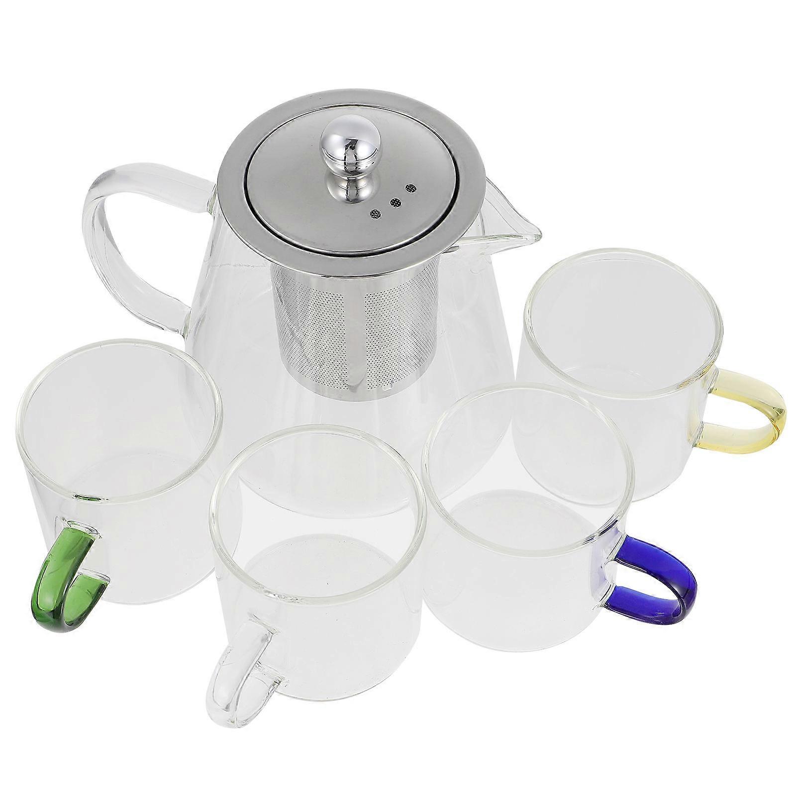 Borosilicate Glass Teapot Set with Heat Resistant Strainer and Teacups for Scented and Fruit Tea, Easy Clean Infuser Design
