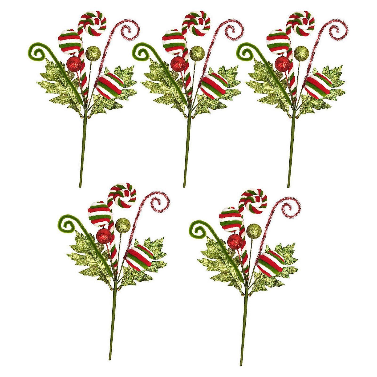 Christmas Candy Cane Decorations 5Pcs Red White Green Berry Curly Spray Tree