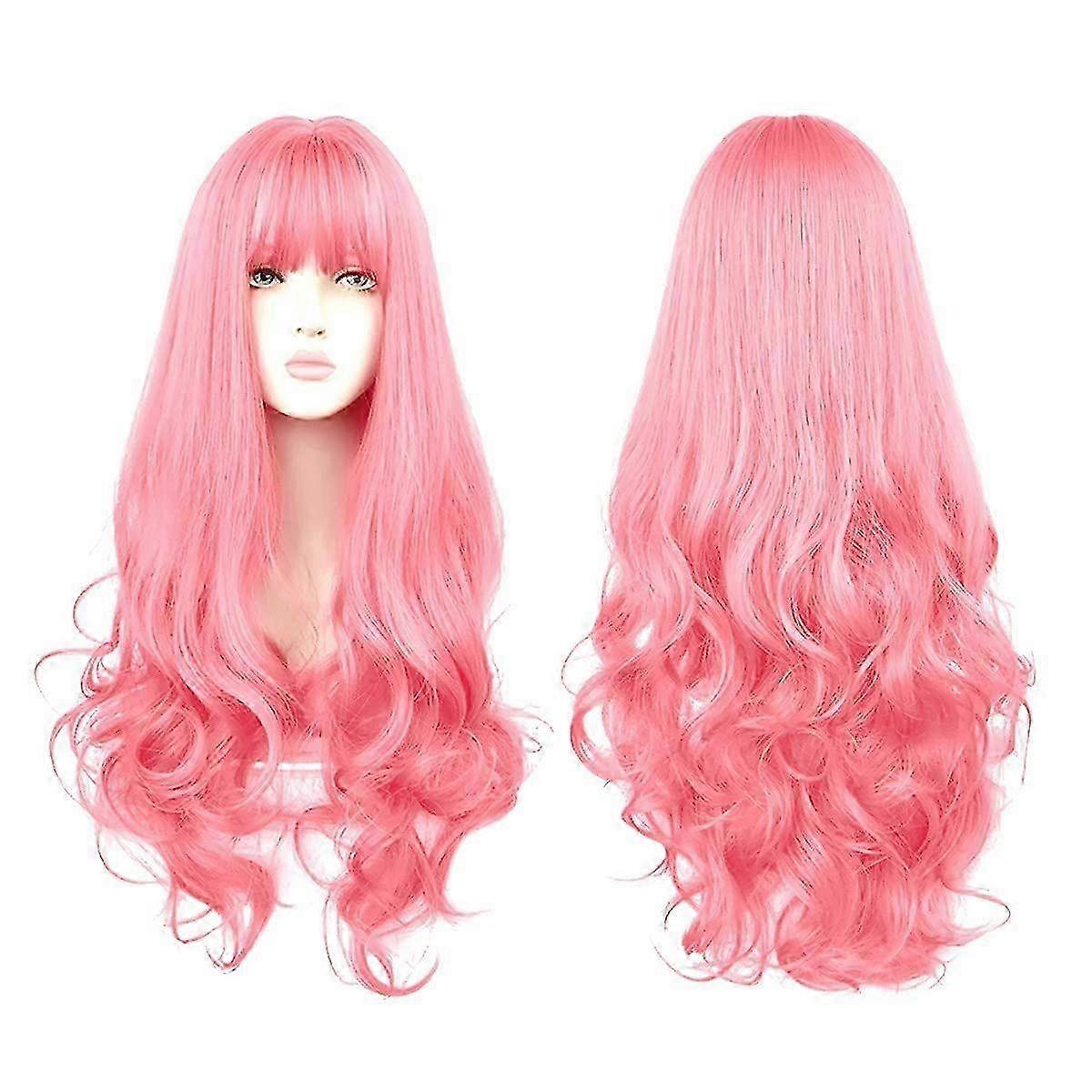Cosplay Wigs for Women, 71 cm Long Pink Wig Curly, Wavy Wigs