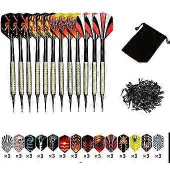 Darts Sets, 12 Packs Soft Darts With Soft Tip Points For Electronic Dartboard With Extra 42 Dart Flights And 100 Black Plastic Dart Tips
