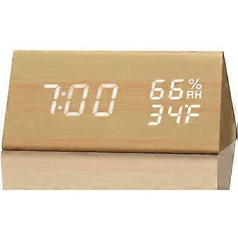 Digital Alarm Clock, With Electronic Wooden Led Time Display, 3 Alarm Settings, Humidity And Temperature Detection, Wooden Electric Clocks For Bedroom