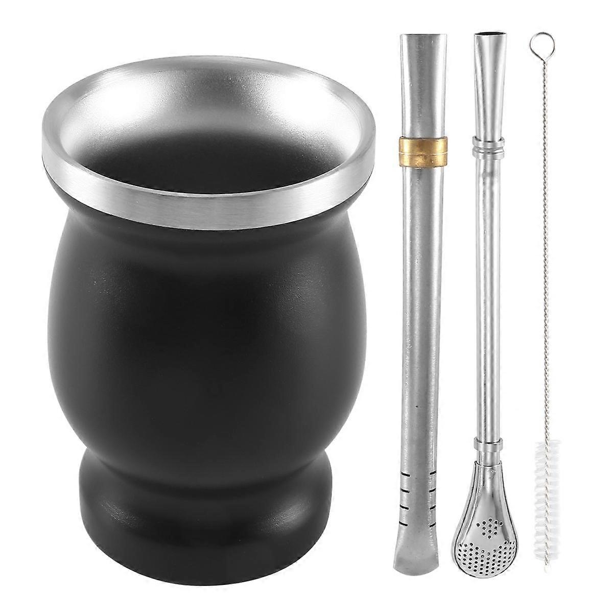 Double-Wall Stainless Yerba Mate Tea Cup Set Coffee Water Cup with 2 Bombillas Straws Spoon&Clean B