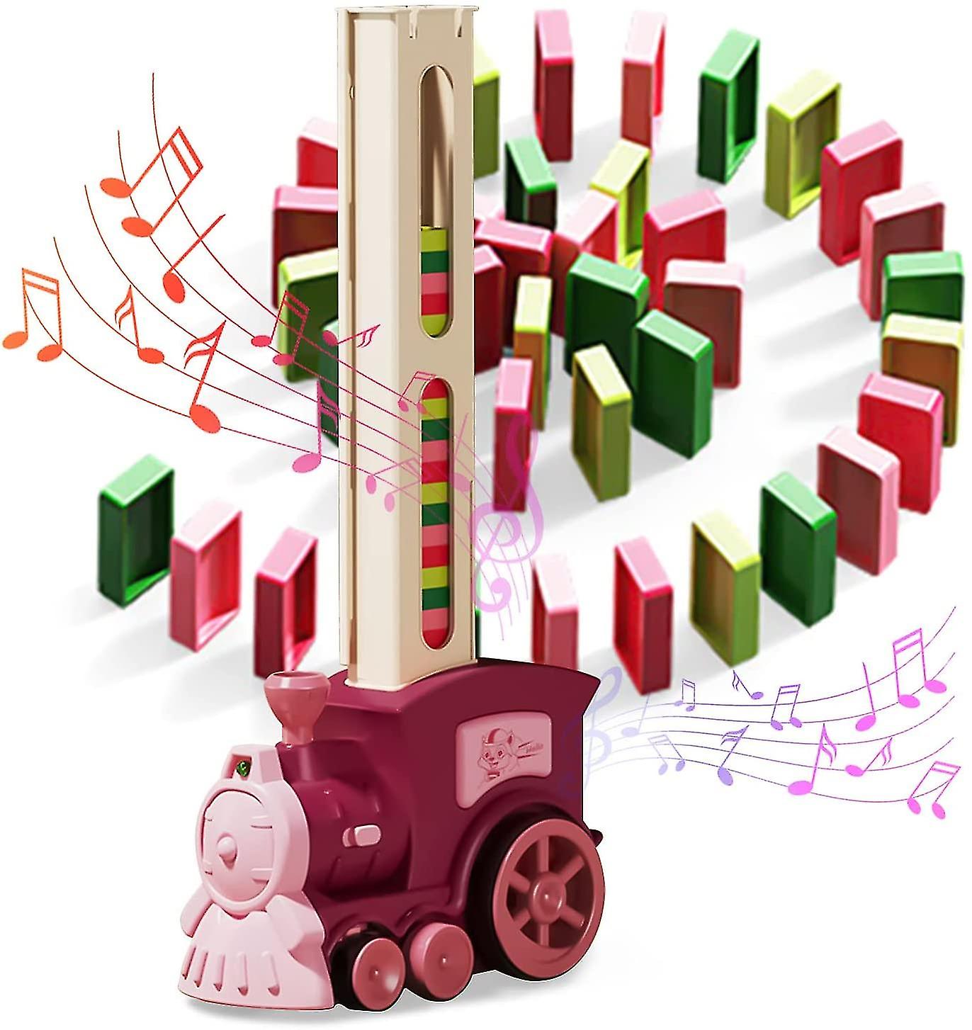 Domino Toddler-initiated Train Toy Set 60pcs Dominoes, Electric Automatic Building And Stacking Train Toy(red)