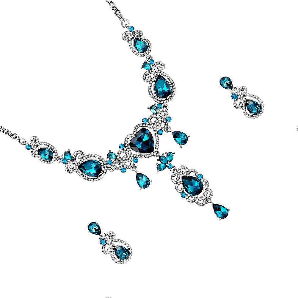 Elegant Blue Necklace and Earrings Set for Women 2Sets