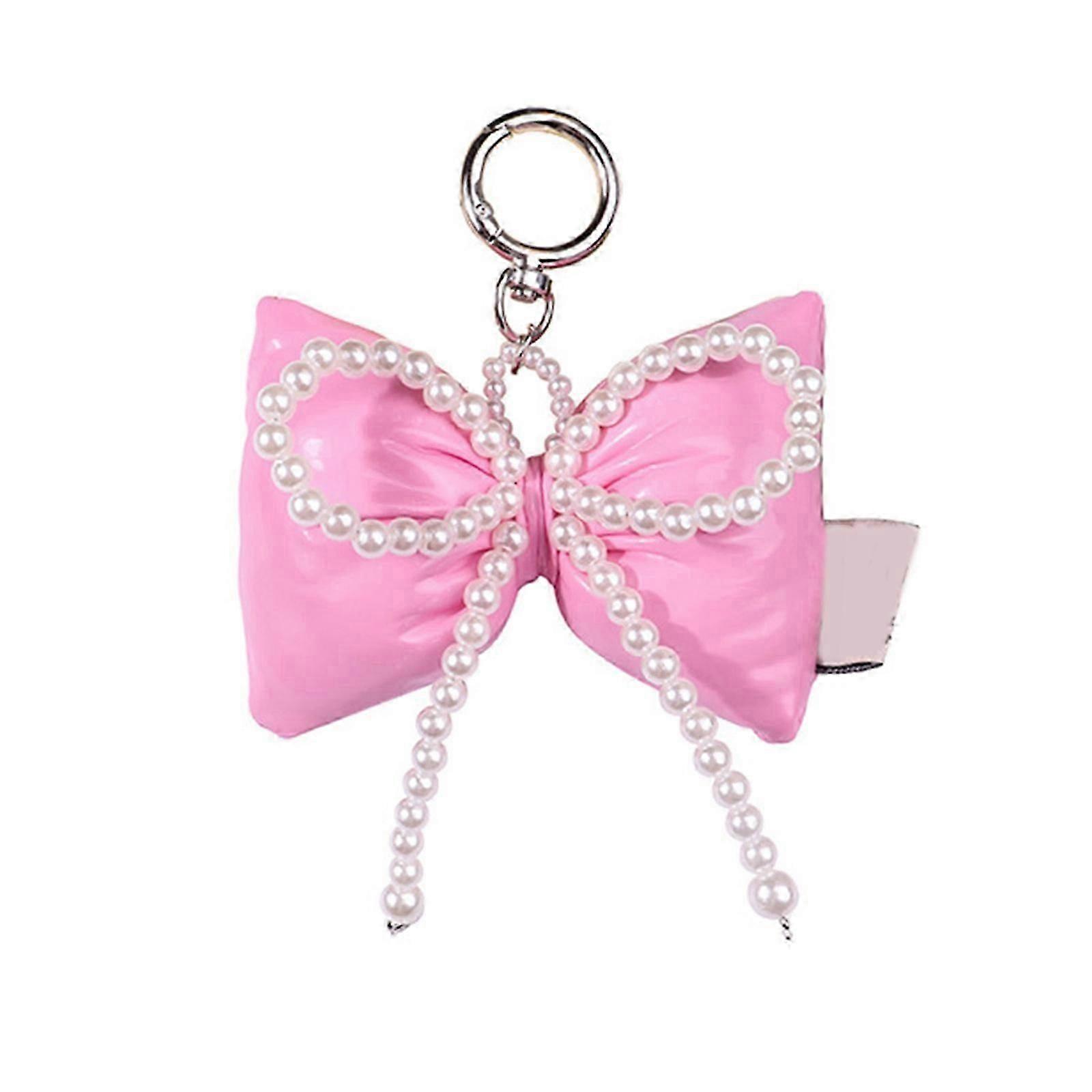 Elegant Handmade Beaded Keyring Stylish Leather Fabric Big Bowknot Keyring for Keychain Enthusiasts and Bag Decorators