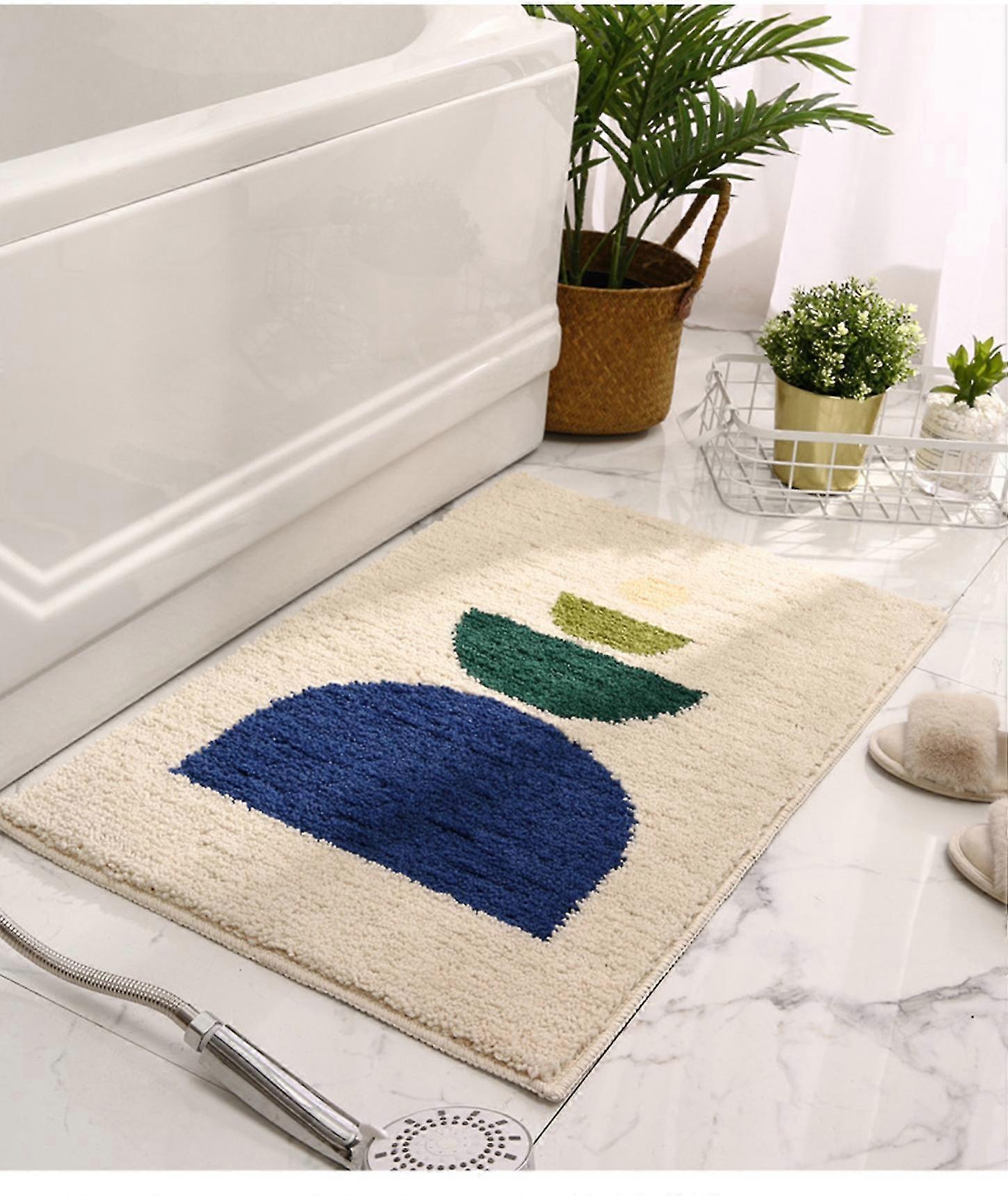 Simple Geometric Bathroom Non-slip Mat Microfiber Flocking Bath Mat Thick Plush Bathroom Rug Absorbent Non-slip Foot Mat Doormat
