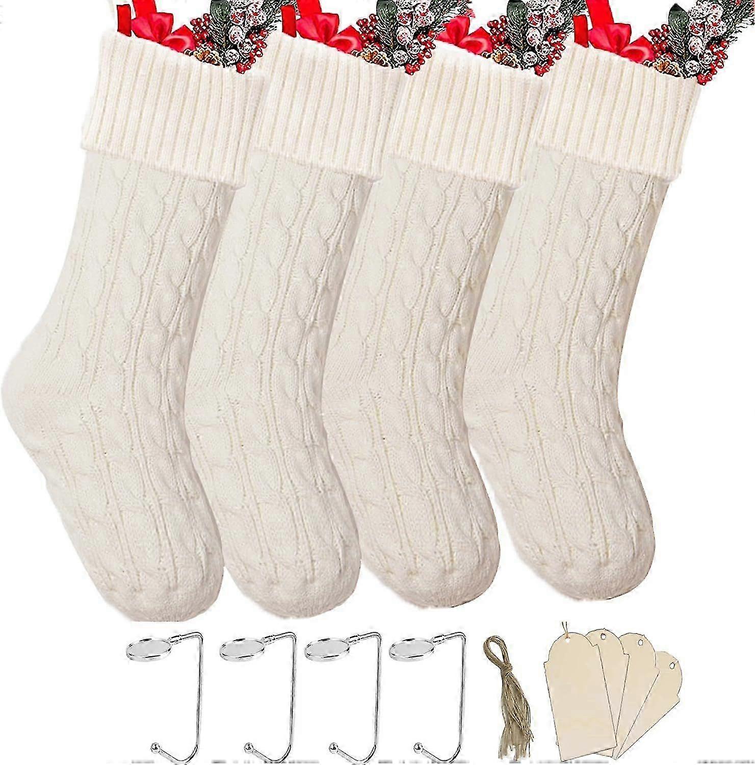 EternaNest Knitted Christmas Stockings 4 Pack, 18 Inch White Christmas Stockings