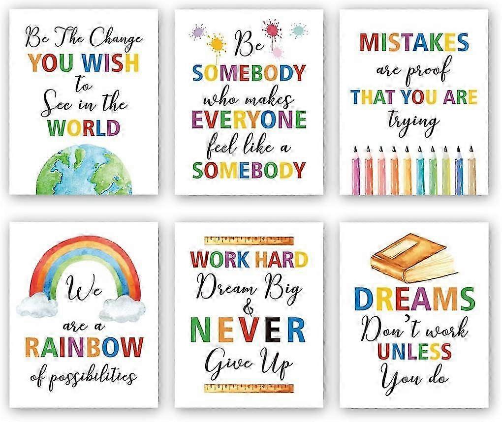 Colorful Words Art Prints, Set of 6 (8X10), Inspirational Quotes Motivational Saying Canvas Poster, Rainbow World Crayon Ink Splatters Wal