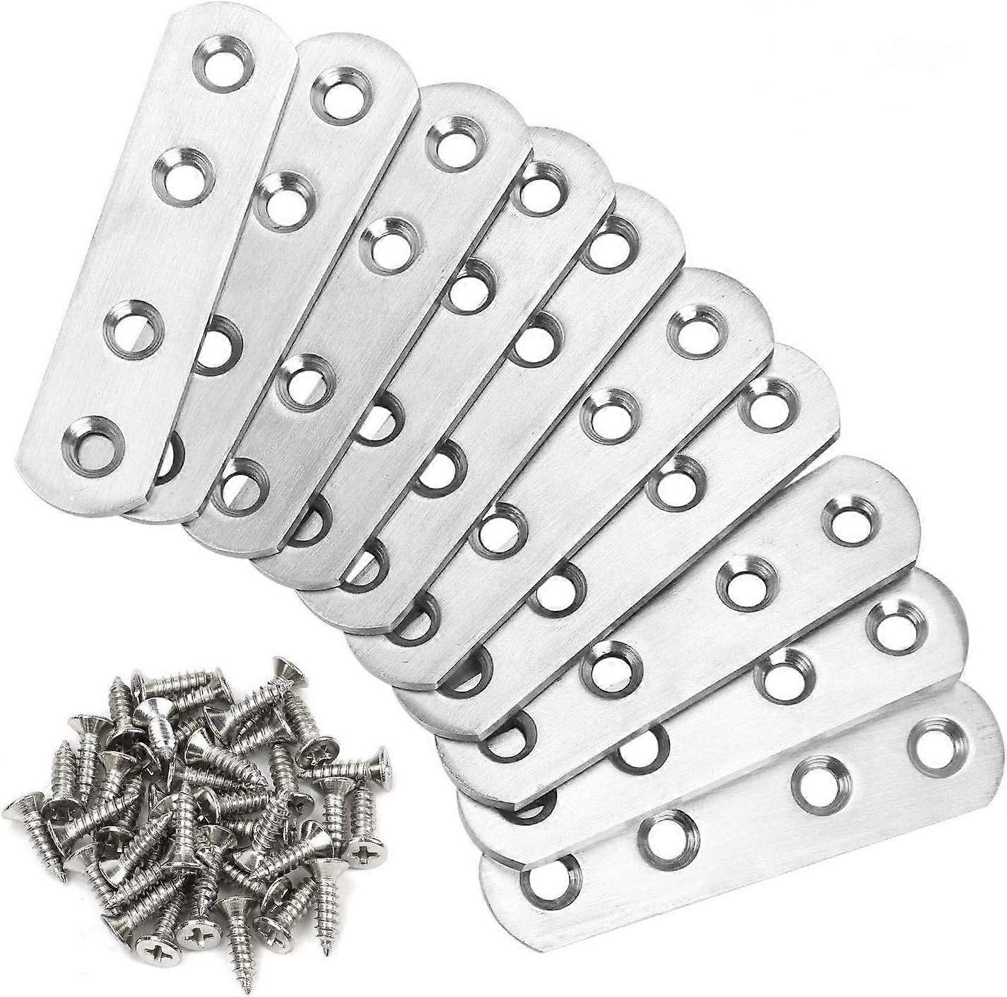 Fixing Straight Flats Plates, 10pcs Assembly Legs Plated Brackets Repair Bracket Fixing Furniture Stainless Steel 76 x 16 mm