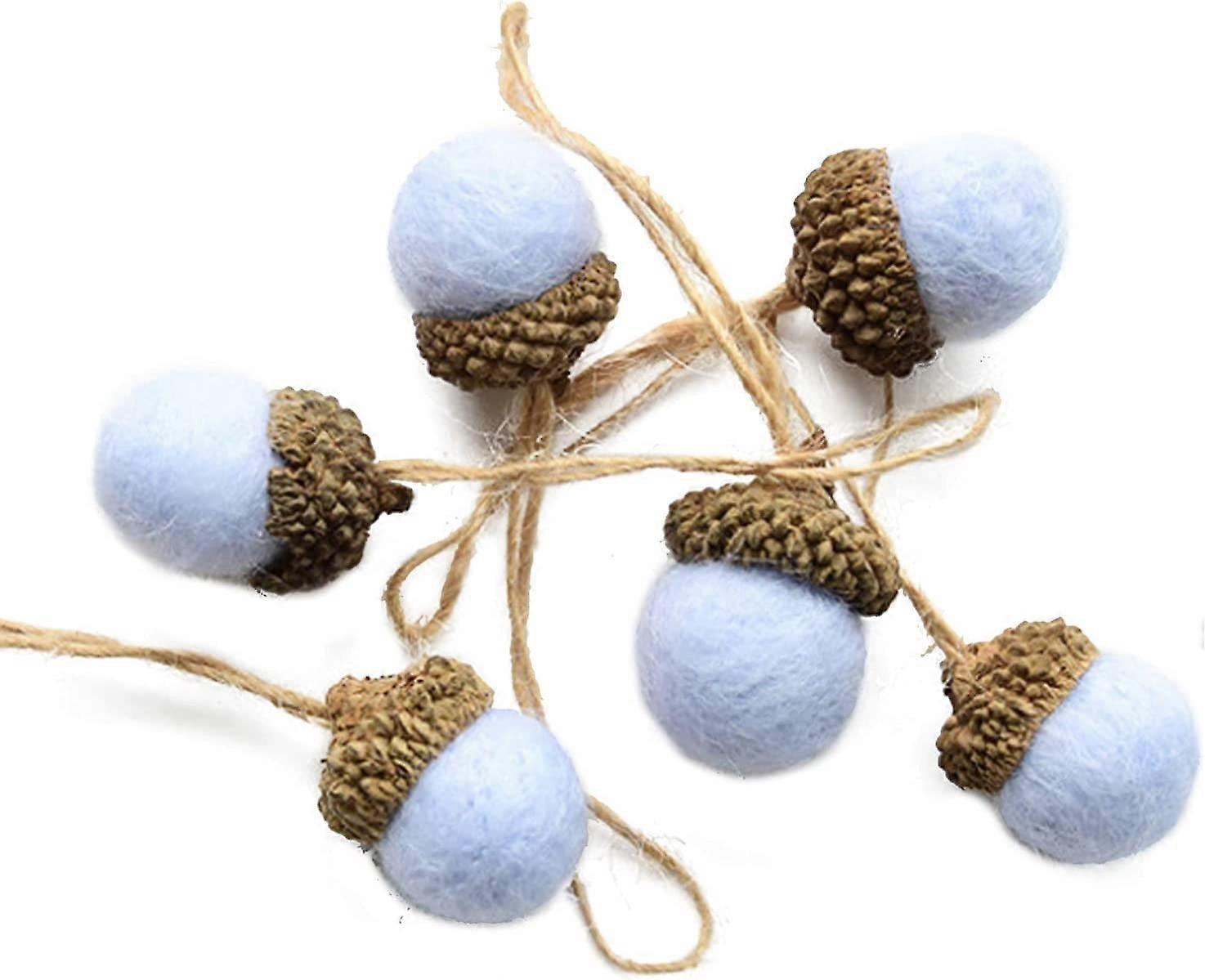Felt Acorn Ornaments Set of 24, Wool Felted Pom Acorn Garland Felt Balls with Rope for Christmas Tree Mantel Wall Party Home Decor, Blue