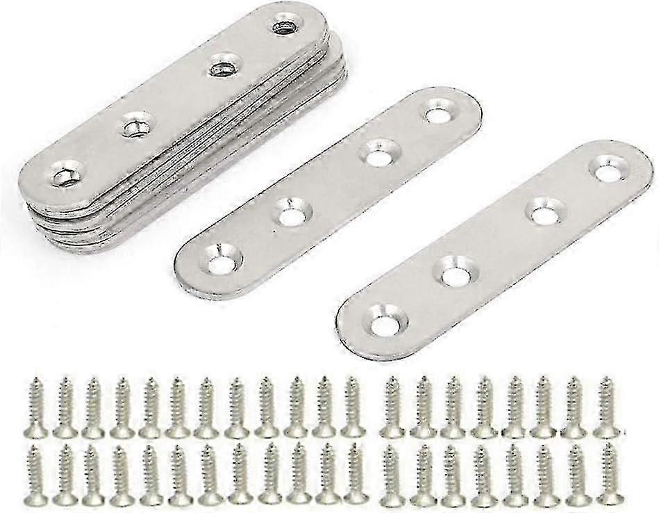 Stainless Steel Flat Brackets, 10 Pieces Metal Assembly Legs, Flat Straight Fixing Brackets, Metal Plates Flat Corner Brackets, with 40 Screws, for Re