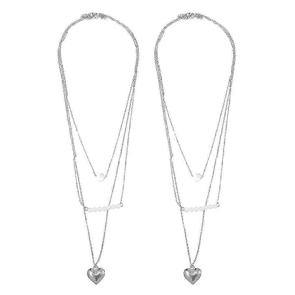 Multilayer Necklaces for Women Parties Heart Pendant Layered Chain Stainless Steel 2Pcs