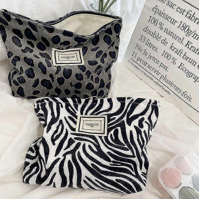 Corduroy Retro Leopard Print Cosmetic Bag Women Travel Cosmetic Pouch Beauty Storage Cases Make Up Organizer Clutch Bag Wash Bag