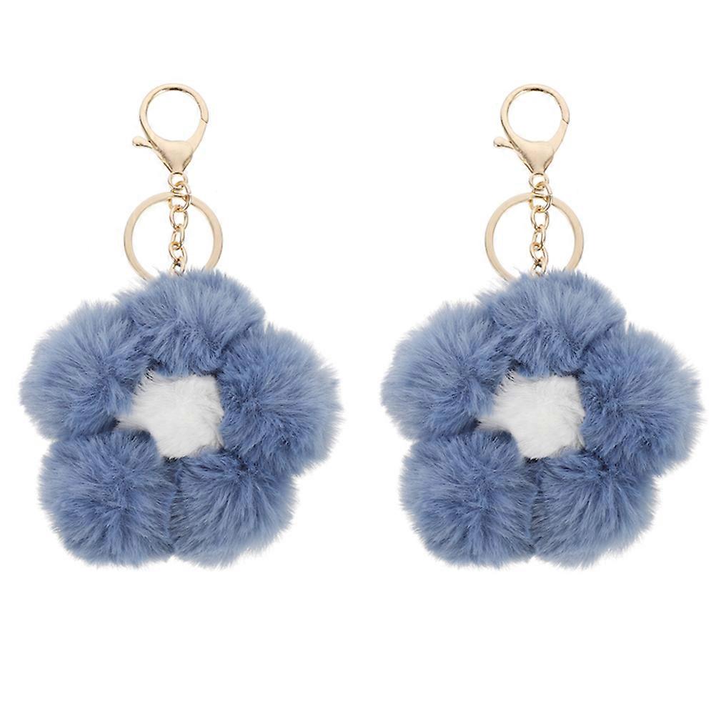 Fluffy Flower Shape Key Ring Ideal For Couples With Dark Blue Color 2Pcs Keychains