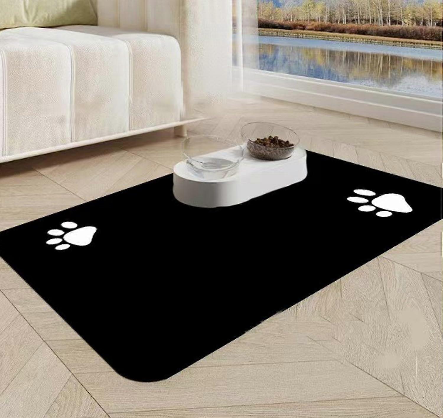 - Materials and function: Our dog bowl mat is made of innovative diatom earth and rubber, featuring a three-layer construction that includes premium silicone and diatomaceous earth. It absorbs spilled water and food quickly, protects the floor from moisture and stains, and keeps the feeding area clean and dry. - Non-slip and water resistant: The 100% non-slip rubber backing holds the mat in place on the floor, even with heavy squeezing or scratching from your pet. A waterproof coating prevents moisture from seeping through and protects the floor from damage. - Easy to clean: After meals, simply rinse to remove residue. For a deeper clean, the mat can be washed in the sink or in a washing machine, so it is ready to use again quickly. - Durable, eco-friendly and pet-friendly: The three-layer construction delivers resilience while remaining odourless and non-toxic. This design is well tolerated by most pets and provides a stable feeding platform for relaxed meals. - Use scenarios: Use under dog or cat bowls at home to catch spills and keep floors dry; ideal for kitchens, hallways, or feeding stations where messes commonly occur; suitable for households with multiple pets or frequent feeding times.
