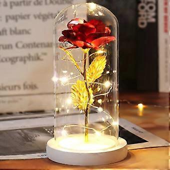 Enchanted Beauty And The Beast Rose Flower with Black Base LED Light In Glass Dome Valentine Christmas Gift Wedding Home Decor