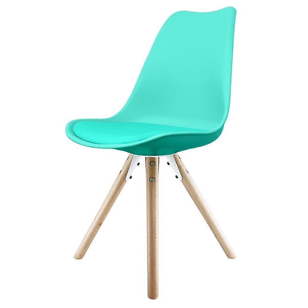 Fusion Living Soho Aqua Blue Plastic Dining Chair With Pyramid Light Wood Legs