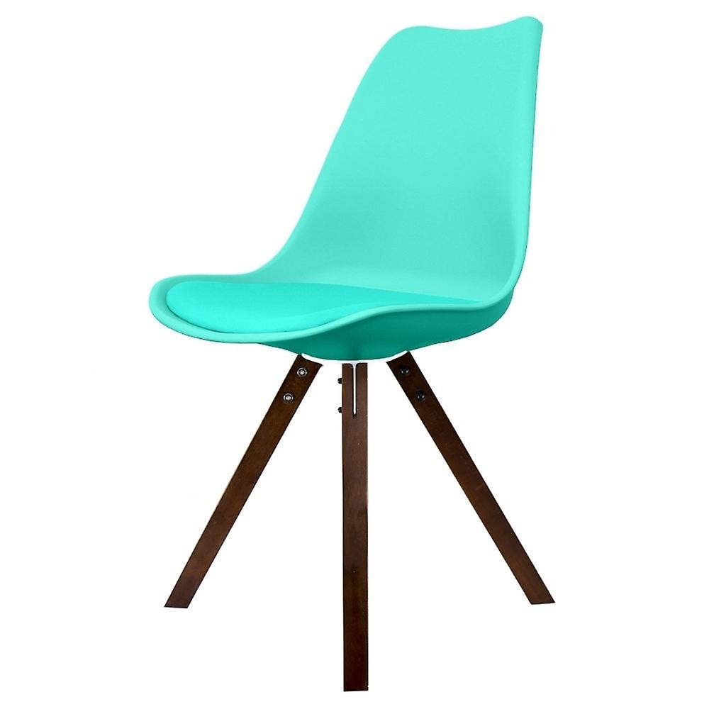 Fusion Living Soho Aqua Blue Plastic Dining Chair With Dark Square Pyramid Legs - Set Of 2