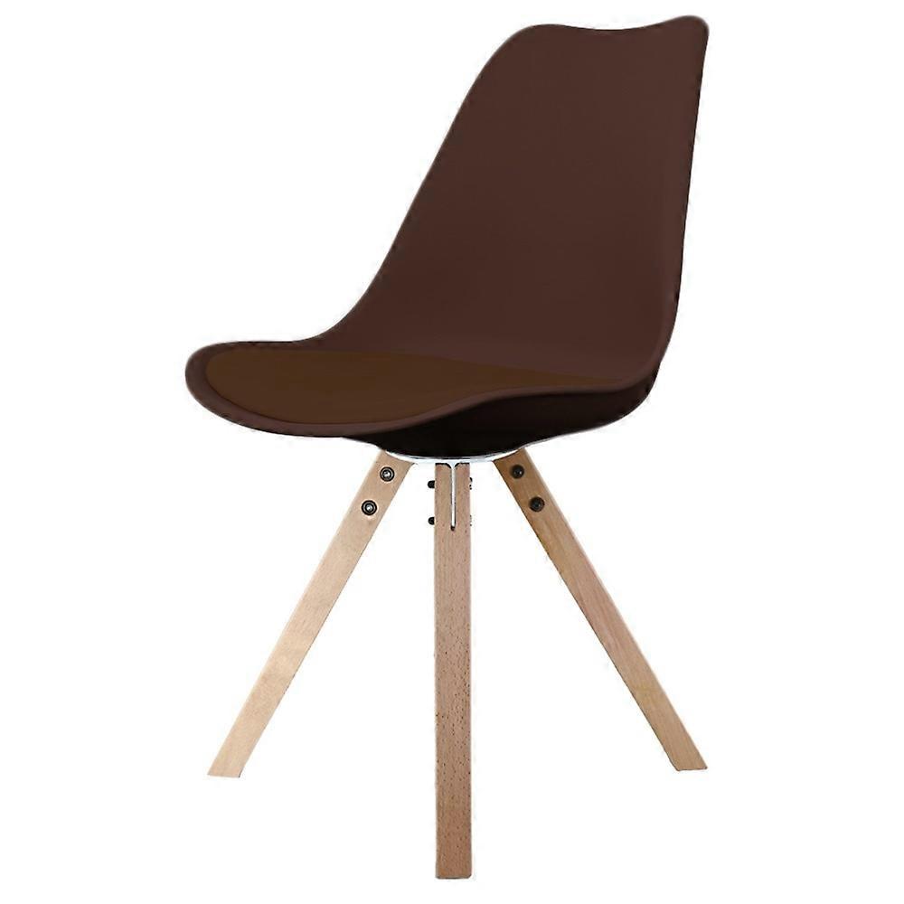 Fusion Living Soho Chocolate Brown Plastic Dining Chair With Square Pyramid Light Wood Legs