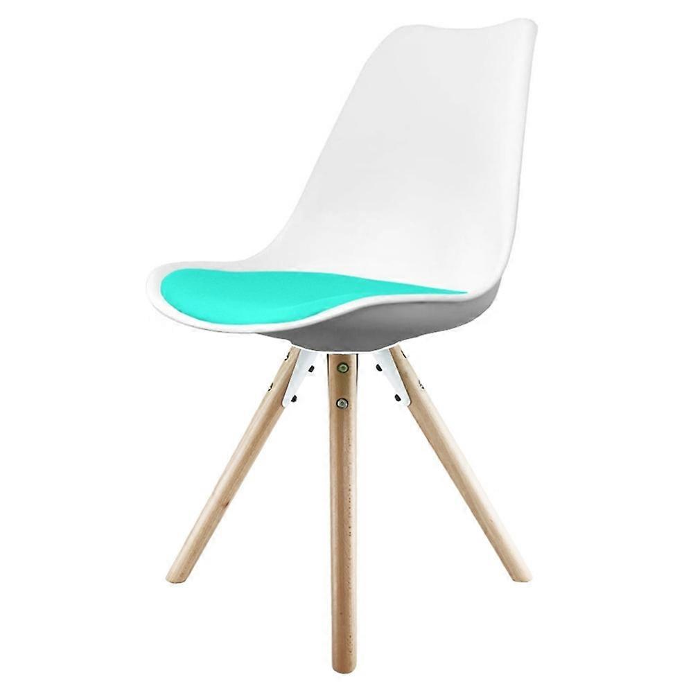 Fusion Living Soho White And Aqua Blue Dining Chair With Pyramid Light Wood Legs