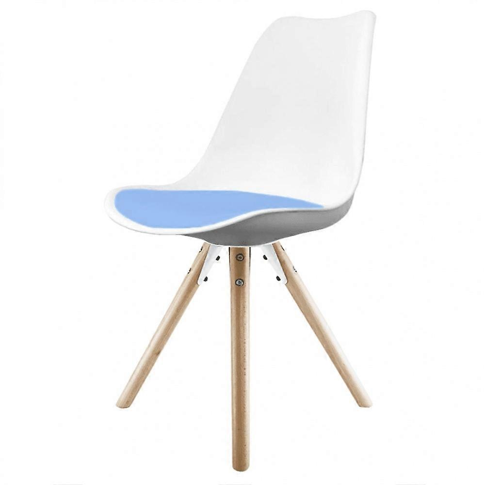 Fusion Living Soho White And Blue Dining Chair With Pyramid Light Wood Legs