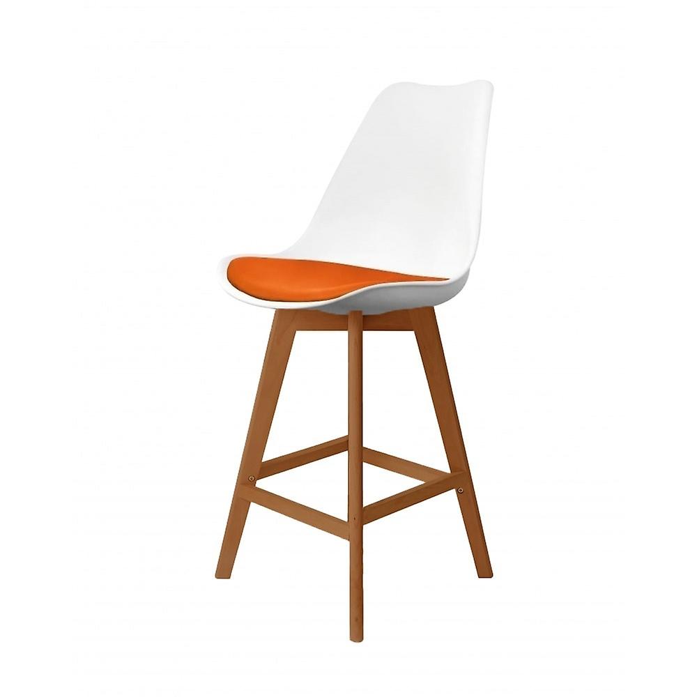Fusion Living Soho White And Orange Plastic Bar Stool With Medium Wood Legs