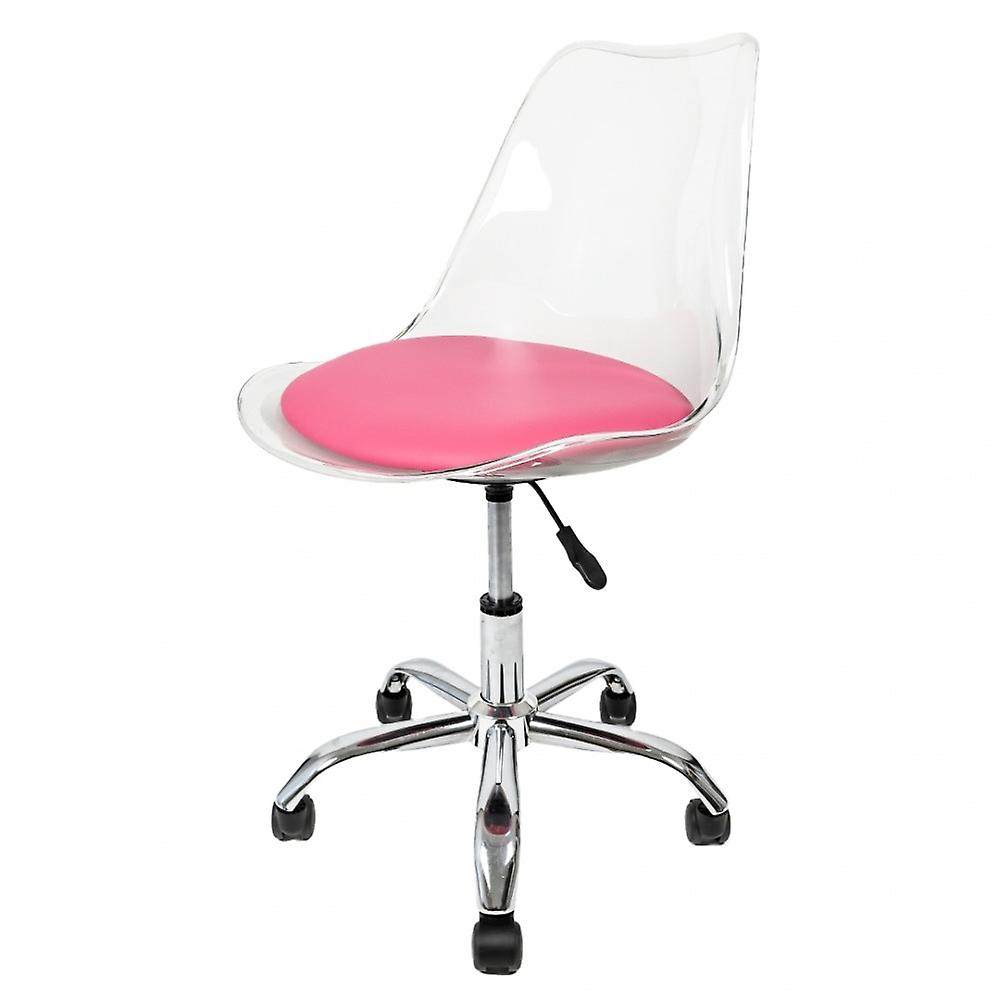 Fusion Living Soho Clear And Bright Pink Plastic Desk Chair With Swivel Base