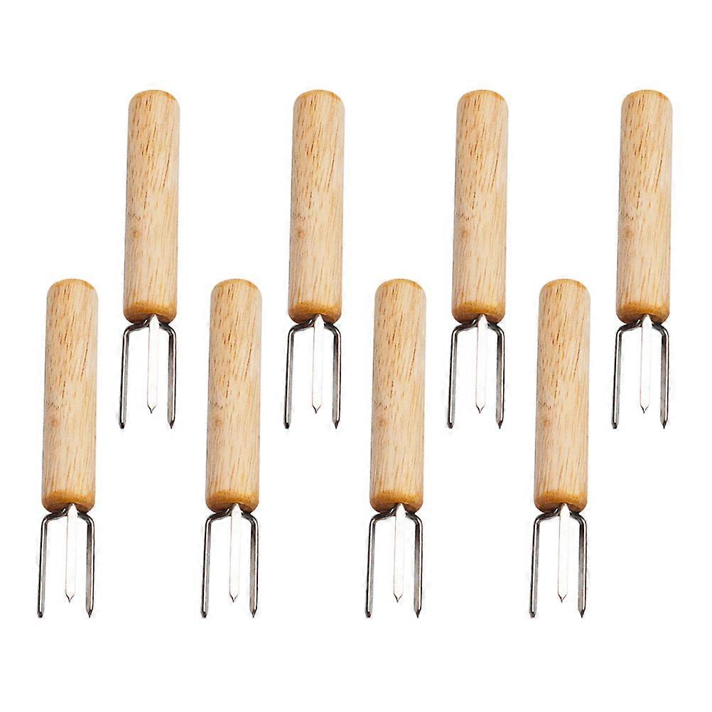 Barbecue Corn Skewers Wooden Handle Ergonomic Portable Corn Holding Fork Outdoor Barbecue 10 x 1.5 x 1.5cm Food Handling 8Pcs